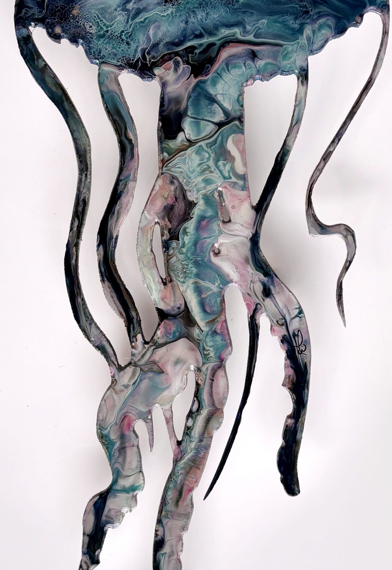 Rich and vibrant Pacific Jellyfish in navy, blush, and hints of burnt umber